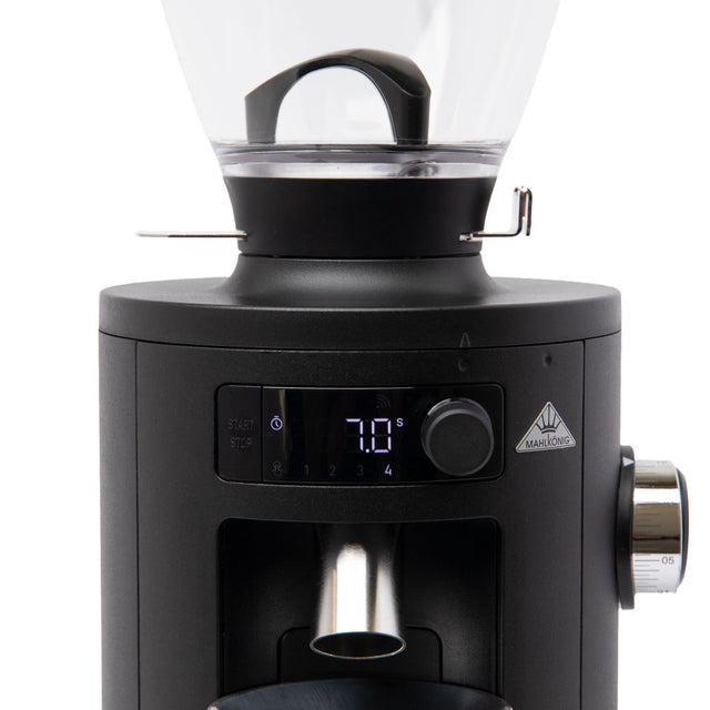 The Mahlkönig X54 is an all-purpose home coffee grinder. The adjustment dial has 35 step-less adjustments that make fine-tuning your espresso possible and switching between brew methods seamless. With 54mm flat steel burrs, a digital timed dosing system, and a swappable hands-free portafilter holder and grounds bin, you can pull that perfect morning espresso and switch to that afternoon pour over effortlessly.